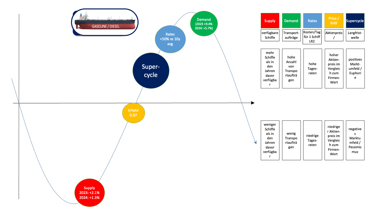 Tankerunternehmen (Product, Crude) sind in meinem Portfolio aktuell klar übergewichtet, die beiden Bereiche machen zusammen fast die Hälfte meiner Positionen aus.