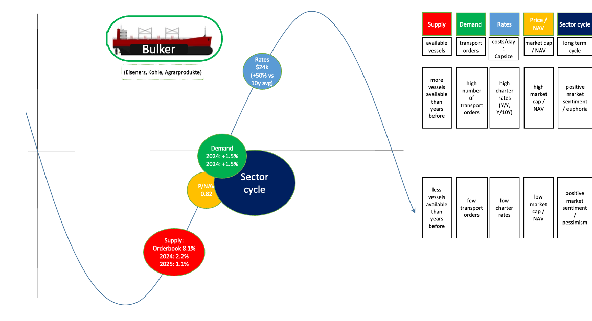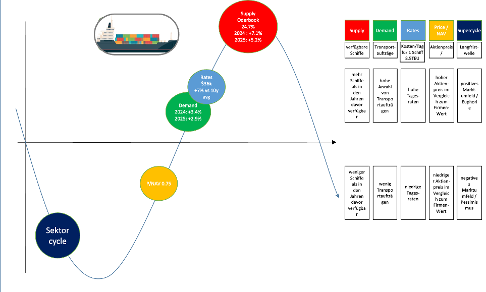- Potential für eine Erholung hoch (unterstützt durch wenige Schiffe, die auch noch altern); Zeitraum bis zur Erholung unsicher – Risiko Dead-Money für 1-2 Jahre hoch