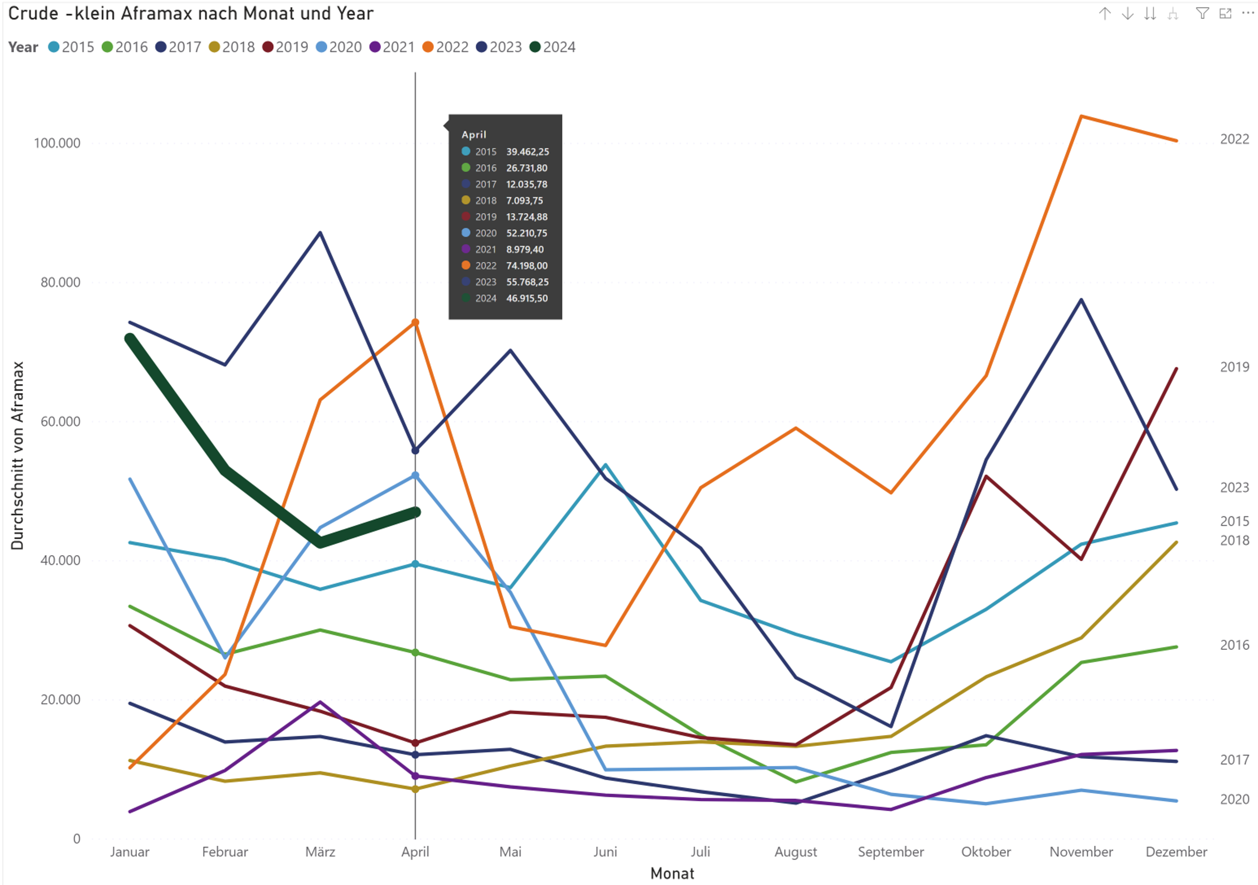 - die Charterraten sind durchschnittlich, die weitere Entwicklung hängt viel von den Probleme im Panama-Kanal ab