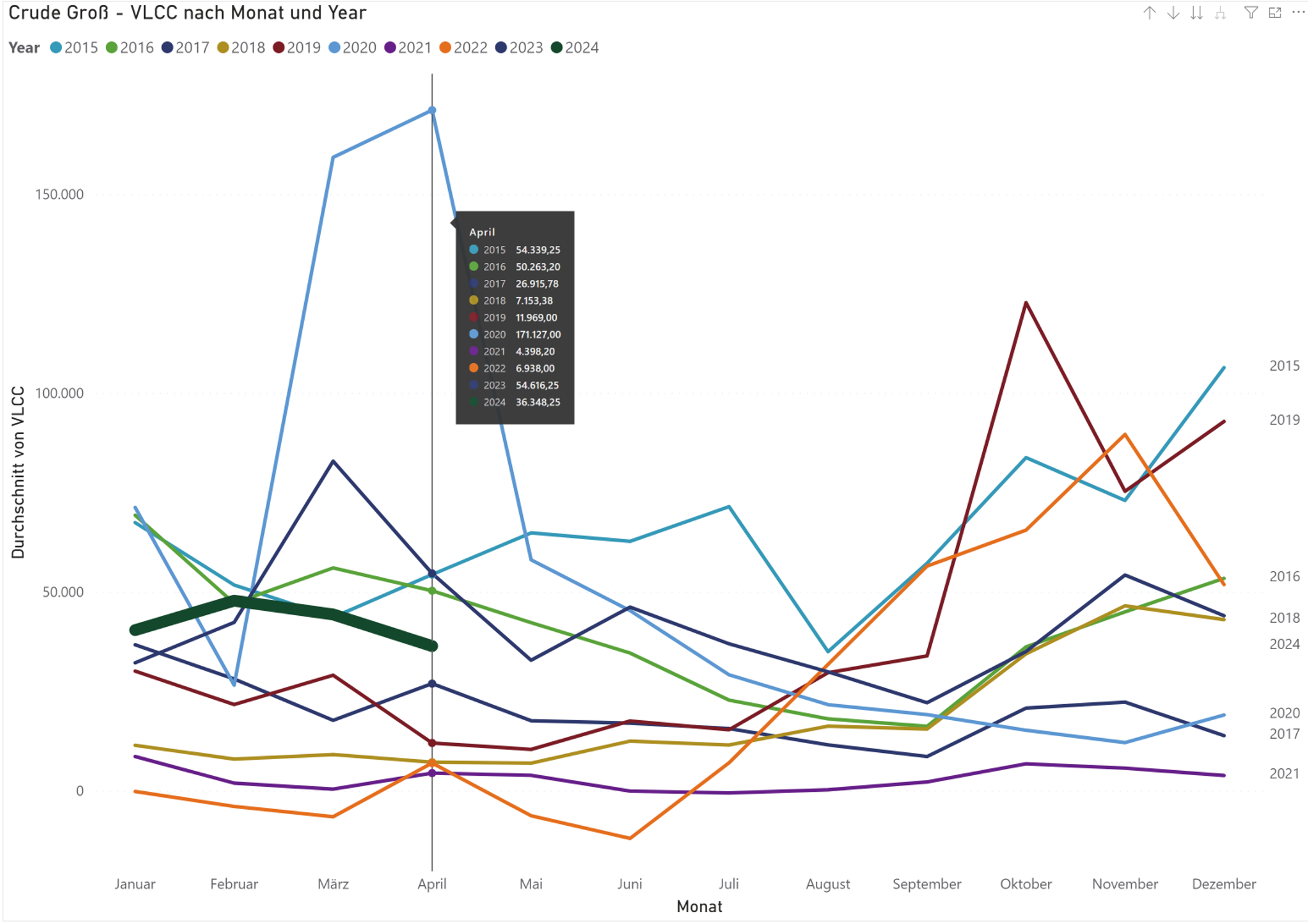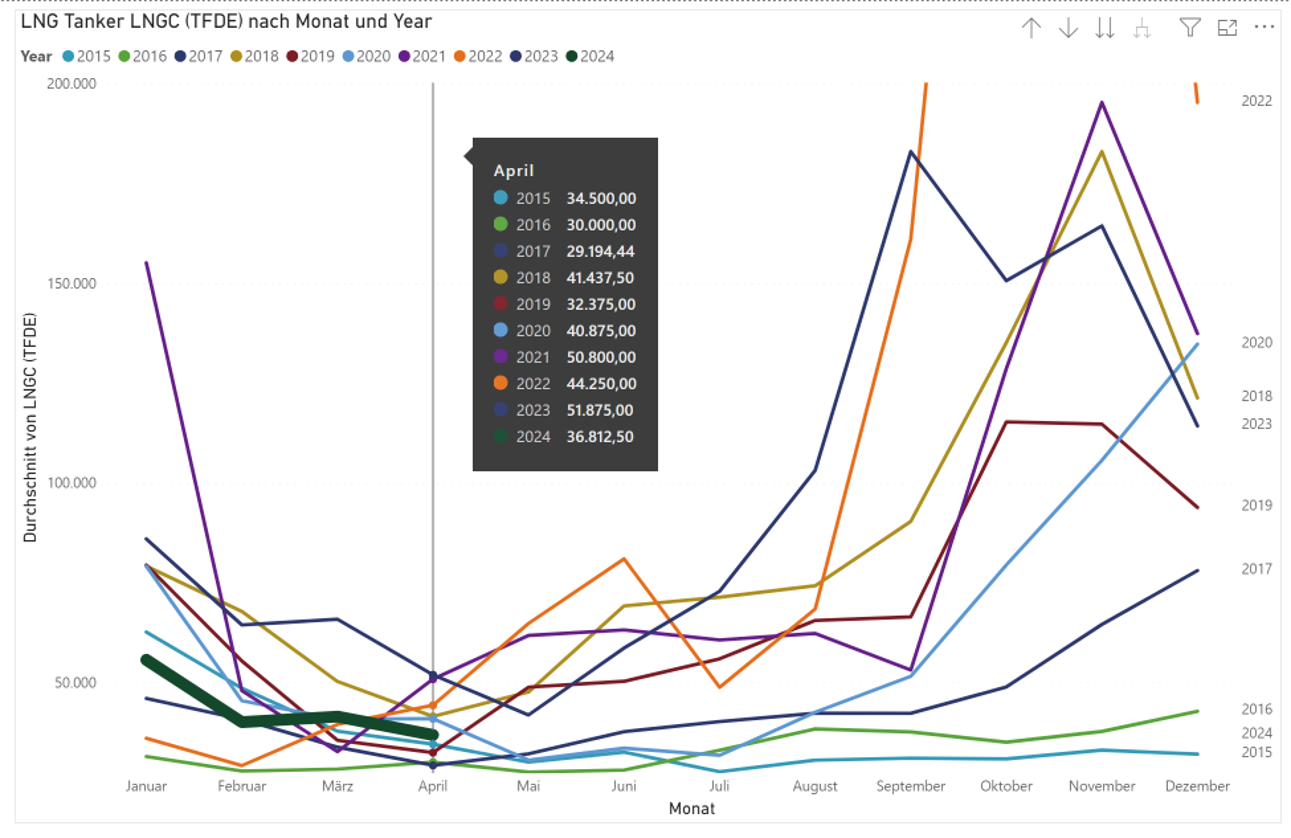 - derzeit nicht ein gesunder Markt, allerdings sind die hohen Charterraten stark abhängig von den Problemen im Roten Meer