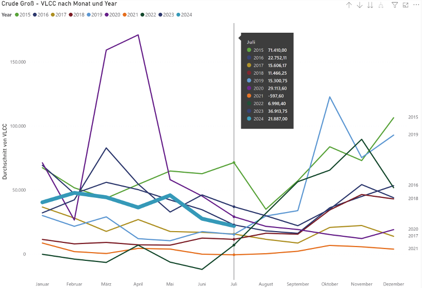 - derzeit nicht ein gesunder Markt, allerdings sind die hohen Charterraten stark abhängig von den Problemen im Roten Meer